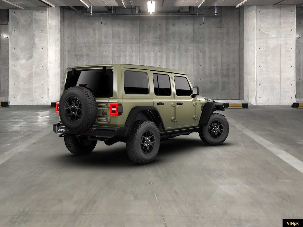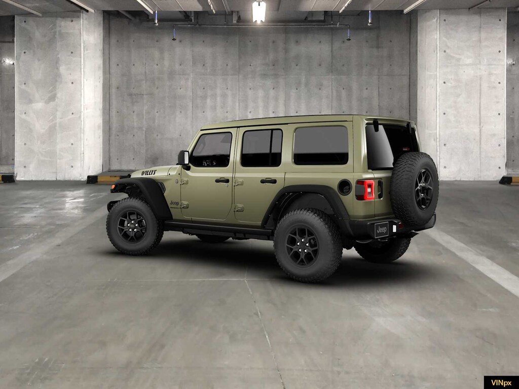 QUICK ORDER PACKAGE 24W WILLYS 3.6L V6 24V VVT UPG I Engine w/ESS, 8-Speed Automatic 850RE Transmission, 7 & 4 Pin Wiring Harness, Conventional Differential Front Axle, 4-Wheel Drive Swing Gate Decal, Black Grille w/Gloss Black Rings, Injection Molded Black Rear Bumper, Dana M210 Wide HD Tube Front Axle, Daytime Running Lamps LED Accents, Front LED Fog Lamps, LED Premium Reflector Headlamps, E-Locker Rear Axle, Corning Gorilla Glass, Security Alarm, Class II Receiver Hitch, Mold In Color Bumper w/Gloss Black, Advanced Brake Assist, Automatic Headlamps, Off-Road Plus Mode, Willys Hood Decal, Full Speed Forward Collision Warning Plus, Rock Protection Sill Rails, Power Heated Mirrors, Enhanced Adaptive Cruise Control, Auxiliary Switches, Dana M220 Wide Rear Axle, Molded in Color Rubicon, 8-SPEED AUTOMATIC 850RE TRANSMISSION Adaptive Cruise Control w/Stop, Anti-Lock 4-Wheel Disc Brakes, Integrated Radar Camera Module (IRCM), Dana M200 Rear Axle, Selec-Speed Control, SKY 1-TOUCH POWER TOP Rear Window Defroster, Rear Window Wiper/Washer, Removable Rear Quarter Windows, Power Top Quarter Window Storage Bag, SAFETY GROUP ParkSense Rear Park Assist System, Auto High Beam Headlamp Control, Blind Spot & Cross Path Detection, LED Taillamps, Injection Molded Black Rear Bumper, CONVENIENCE GROUP Emergency/Assistance Call, 2-Door Passive Entry, Front Door Locks, Cluster 7.0 TFT Color Display, Universal Garage Door Opener, Heated Front Seats, Air Conditioning w/Auto Temp Control, Heated Steering Wheel, Air Filtering, 3.6L V6 24V VVT UPG I ENGINE W/ESS Engine Oil Cooler (STD).