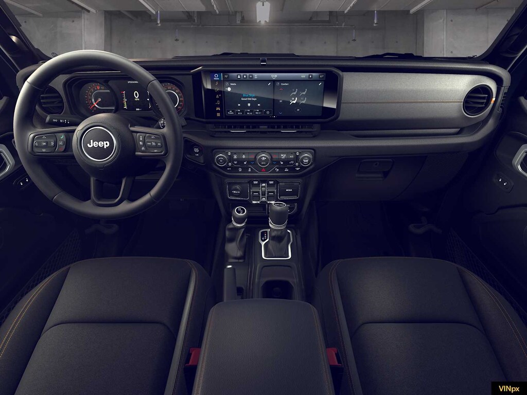 8-SPEED AUTOMATIC 850RE TRANSMISSION Adaptive Cruise Control w/Stop, Anti-Lock 4-Wheel Disc Brakes, Dana M200 Rear Axle, Selec-Speed Control, SKY ONE-TOUCH POWER TOP Rear Window Defroster, Rear Window Wiper/Washer, Removable Rear Quarter Windows, Power Top Quarter Window Storage Bag, QUICK ORDER PACKAGE 24S SPORT S 3.6L V6 24V VVT UPG I Engine w/ESS, 8-Speed Automatic 850RE Transmission, Advanced Brake Assist, Power Heated Mirrors, Enhanced Adaptive Cruise Control, Automatic Headlamps, Corning Gorilla Glass, Premium Wrapped Steering Wheel, Security Alarm, Sun Visors w/Illuminated Vanity Mirrors, Full Speed Forward Collision Warning Plus, SAFETY GROUP ParkSense Rear Park Assist System, Auto High Beam Headlamp Control, Blind Spot & Cross Path Detection, LED Taillamps, Injection Molded Black Rear Bumper, CONVENIENCE GROUP Emergency/Assistance Call, 2-Door Passive Entry, Front Door Locks, Cluster 7.0 TFT Color Display, Universal Garage Door Opener, Heated Front Seats, Air Conditioning w/Auto Temp Control, Heated Steering Wheel, Air Filtering, TRAILER TOW & AUX SWITCH GROUP Class II Receiver Hitch, 7 & 4 Pin Wiring Harness, Auxiliary Switches, ALPINE PREMIUM AUDIO SYSTEM, MOPAR BLACK TUBULAR SIDE STEPS, 17 X 7.5 GRAY WHEELS (STD), LED HEADLAMP & FOG LAMP GROUP Front LED Fog Lamps, LED Premium Reflector Headlamps, 3.6L V6 24V VVT UPG I ENGINE W/ESS Engine Oil Cooler (STD).