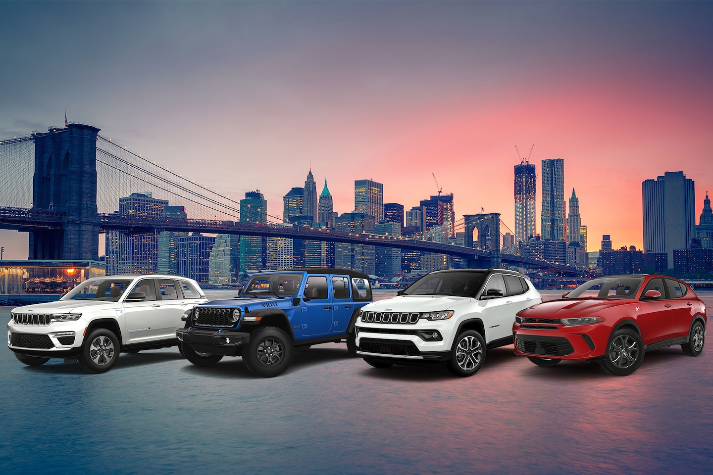 Lease a new 2024 Jeep Compass Limited 4X4, a 2024 Jeep Grand Cherokee 4xe, a 2024 Jeep Wrangler 4xe, or a 2024 Dodge Hornet R/T eAWD!