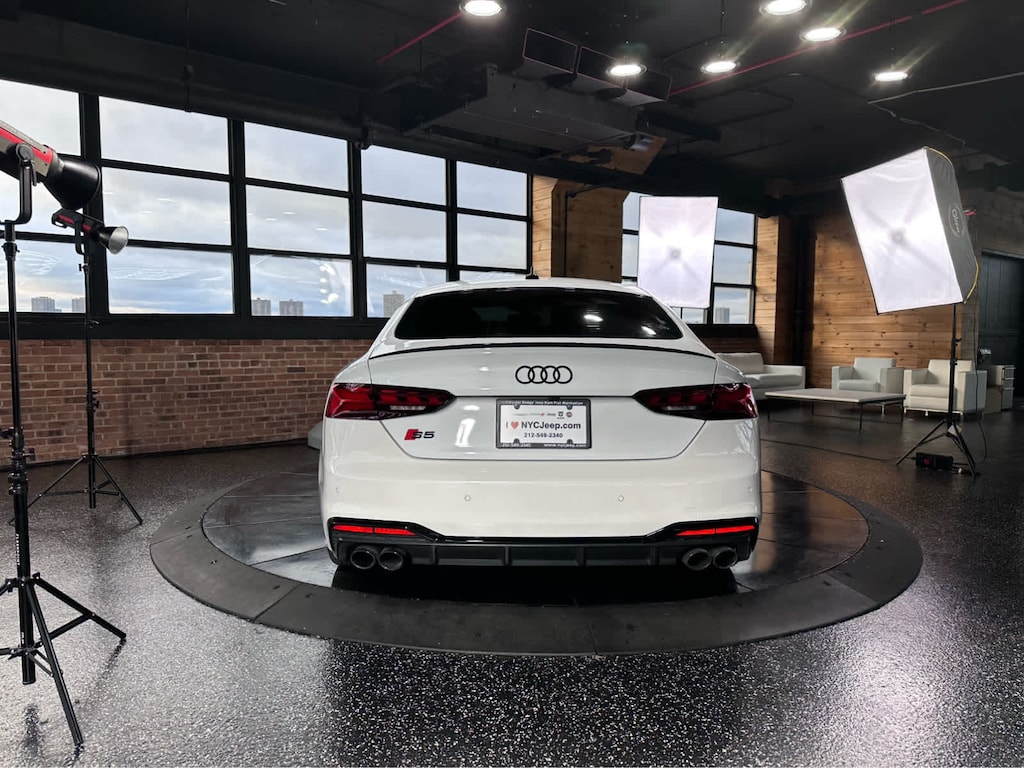 Wireless Phone Charging Pad, Power Folding Exterior Mirrors, Leatherette Covered Center Console & Door Armrests, 2 Rear USB Charge Ports, Top View Camera System, Bang & Olufsen Sound System w/3D Sound, Alarm System w/Motion Sensor, Auto-Dimming Exterior Mirrors w/Memory, SiriusXM w/360L, 3-month Platinum Plan trial subscription, Audi Advanced Key, keyless engine start/stop and entry, doors and trunk, Audi Side Assist w/Pre Sense Rear, Driver Seat Memory, Audi Virtual Cockpit Plus, Black Exterior Mirror Housings & Exhaust Tips, Wheels: 20 5-Twin-Spoke Polygon Design, Bi-color finish, Tires: 265/30R20 94Y XL Summer, Black Rear Lip Spoiler, Black Fender Badges, Black Exterior Trim, Black Audi Rings & Badges, front and rear set of black rubber mats (4), Front set features S5 logo. Safety equipment includes Lane Keeping Assist, Blind Spot Monitor, Cross-Traffic Alert, Child Safety Locks, Electronic Stability Control, Brake Assist, 4-Wheel ABS, 4-Wheel Disc Brakes. Audi Premium Plus with Glacier White Metallic exterior and Black interior features a V6 Cylinder Engine with 349 HP at 6300 RPM*.