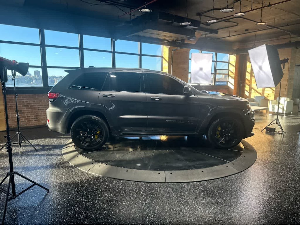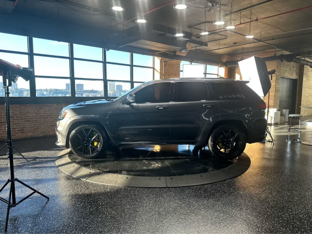 Cross-Traffic Alert, Lane Keeping Assist, Blind Spot Monitor, Child Safety Locks, Electronic Stability Control, Brake Assist, 4-Wheel ABS, 4-Wheel Disc Brakes Jeep Trackhawk with Granite Crystal Metallic Clearcoat exterior and Black interior features a 8 Cylinder Engine with 707 HP at 6000 RPM*. Spotless
